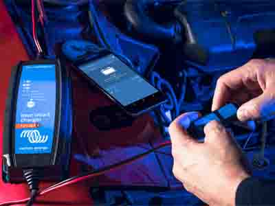 A sobrecarga ou a subcarga podem danificar as baterias, pelo que a utilização do carregador correto e o cumprimento das práticas de carregamento recomendadas ajudam a prolongar a vida útil da bateria. Os carregadores inteligentes que correspondem às necessidades da bateria podem ser especialmente benéficos. Certifique-se de que o carregador tem várias fases, a corrente nominal correta para o tipo e capacidade da bateria e pode ser programado com as tensões de carga corretas para o tipo/química específicos da bateria. Em caso de dúvida, consulte a folha de dados do fabricante ou o manual do utilizador para obter as taxas e tensões de carregamento recomendadas. Os carregadores topo de gama, como a gama Blue Smart da Victron Energy, têm processos de carregamento adaptativos que monitorizam o padrão de utilização da bateria e ajustam as fases de carregamento em conformidade para otimizar a vida útil da bateria.