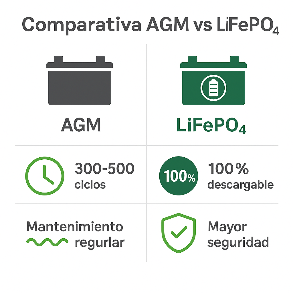 | Caraterísticas | AGM / Gel | LiFePO4 UPOWER UE-12LI200 LiFePO4 UE-12LI200 |