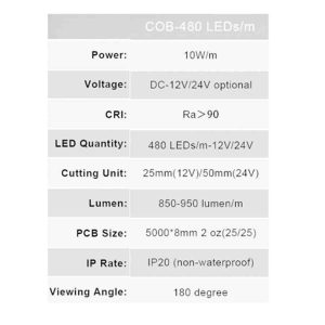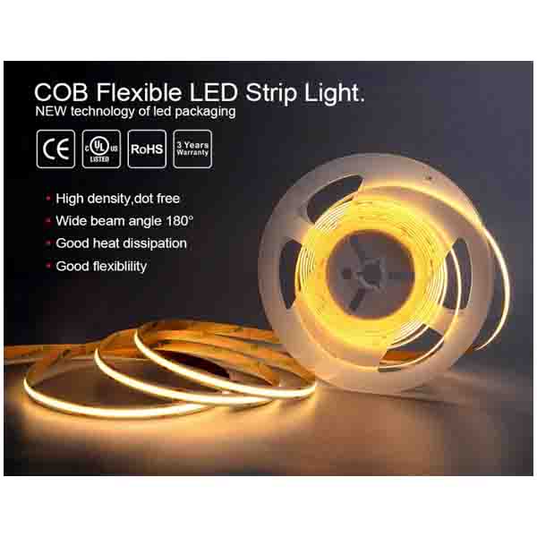 Fita LED COB 12v. 3000k Branco quente 5mts. 480 LED/metro