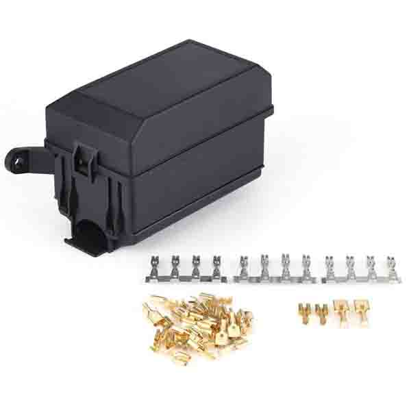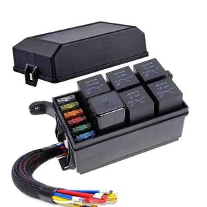 Com este módulo pode instalar de forma fácil e compacta até 6 relés de 4 ou 5 pinos e 6 fusíveis de lâmina ATO standard (12v).