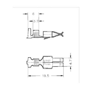 Terminal fêmea estanhado para engaste de fios com secção transversal de 1-2,5mm2.