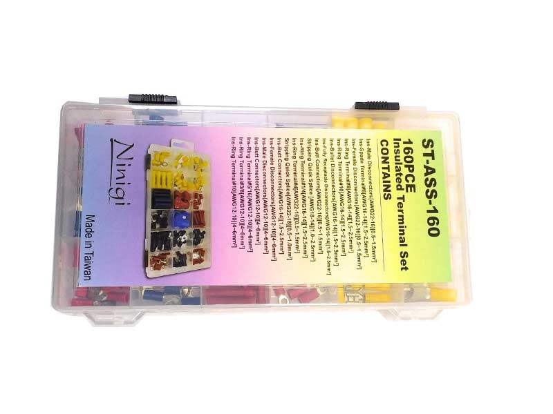 Este kit contém 160 peças entre 20 tipos diferentes de terminais.