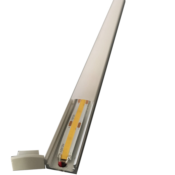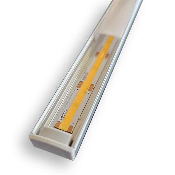 Fita LED Cob de alta luminosidade montada em perfil de alumínio com difusor opaco.