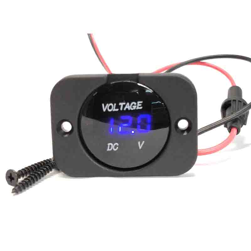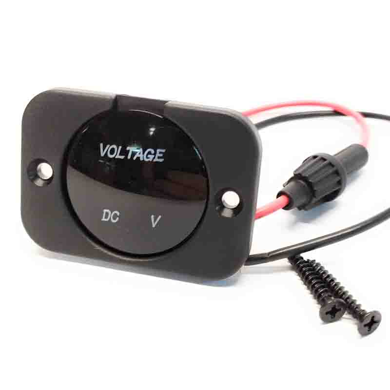 O painel inclui: Voltímetro digital com luz azul