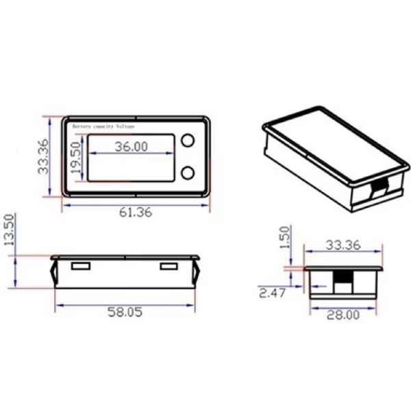 - Ampla gama de tensão de funcionamento: este monitor de bateria pode suportar uma ampla gama de tensão de funcionamento de capacidade, tensão a tensão (DC 7-68V).